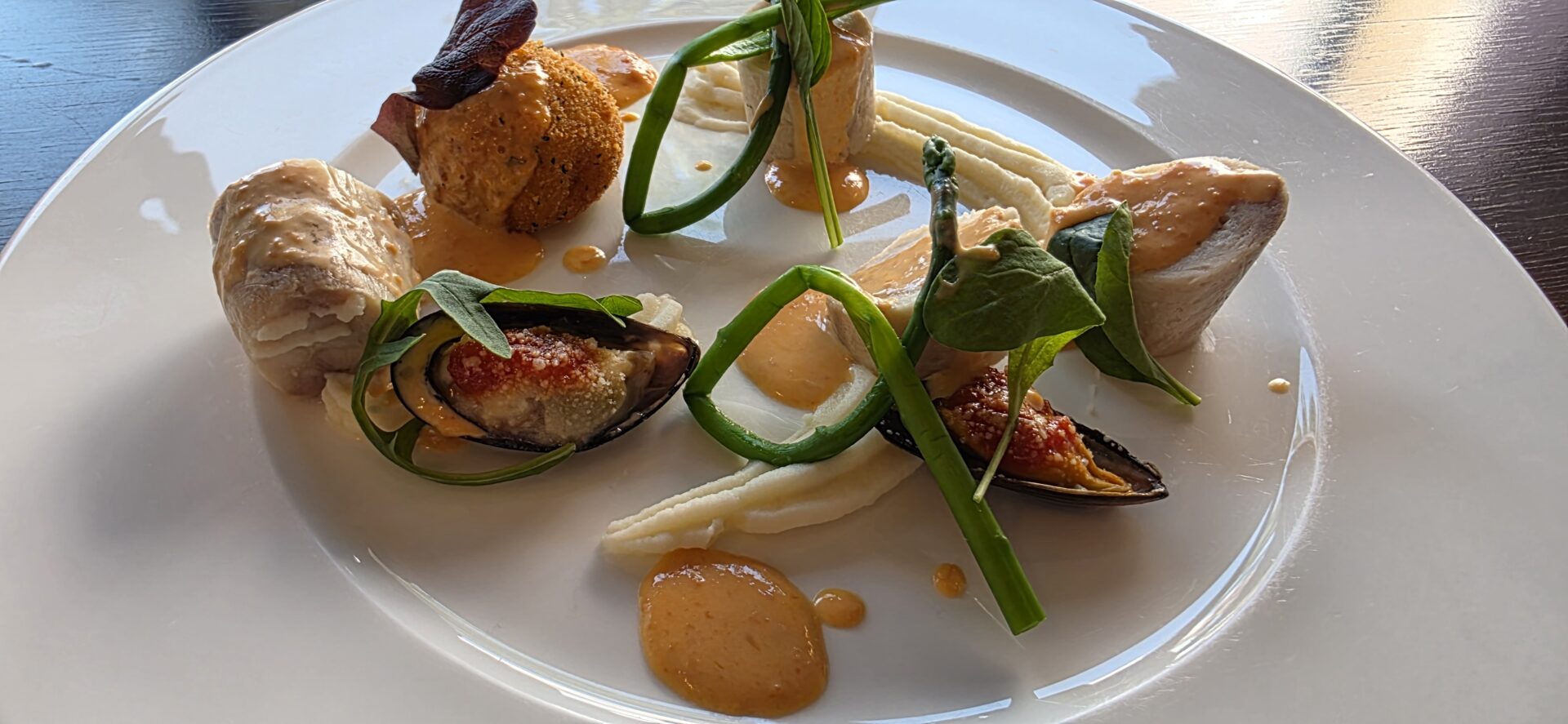 『白身魚のインポルチーニ アランチーニ添え』です。