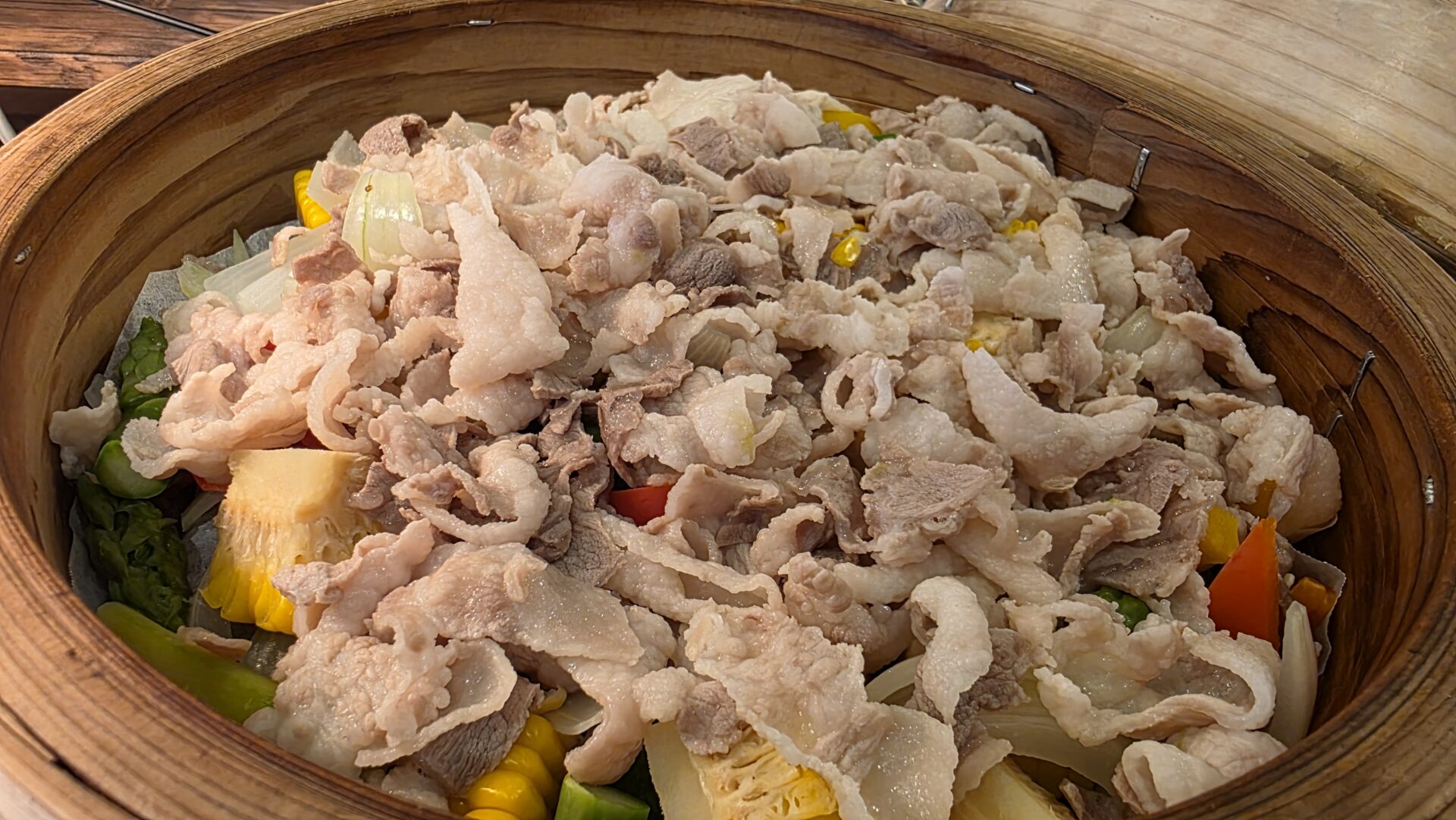 胡麻団子や本日のコロッケは、外はカリッと中はほっこり。蒸し料理には、豚肉と彩り野菜のヴァプールをバジルソースで爽やかに仕上げました。