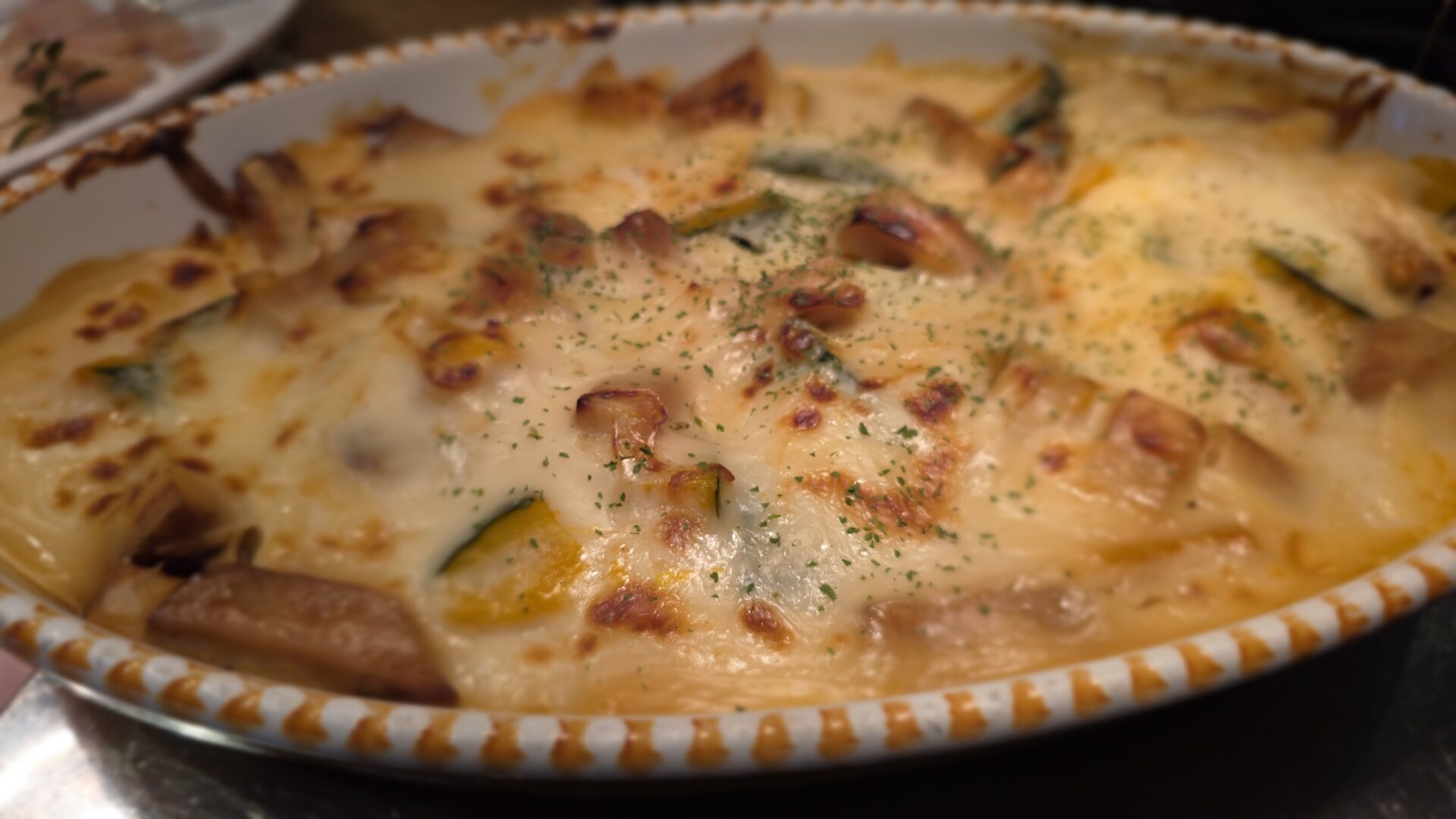 白身魚の幽庵焼きや、薩摩芋と南瓜のグラタン、茸と明太のピッツァなど、秋の香りが広がる焼き物が並びます。炒め物には、野菜炒めや酢鶏など、中華の定番を秋らしくアレンジ。