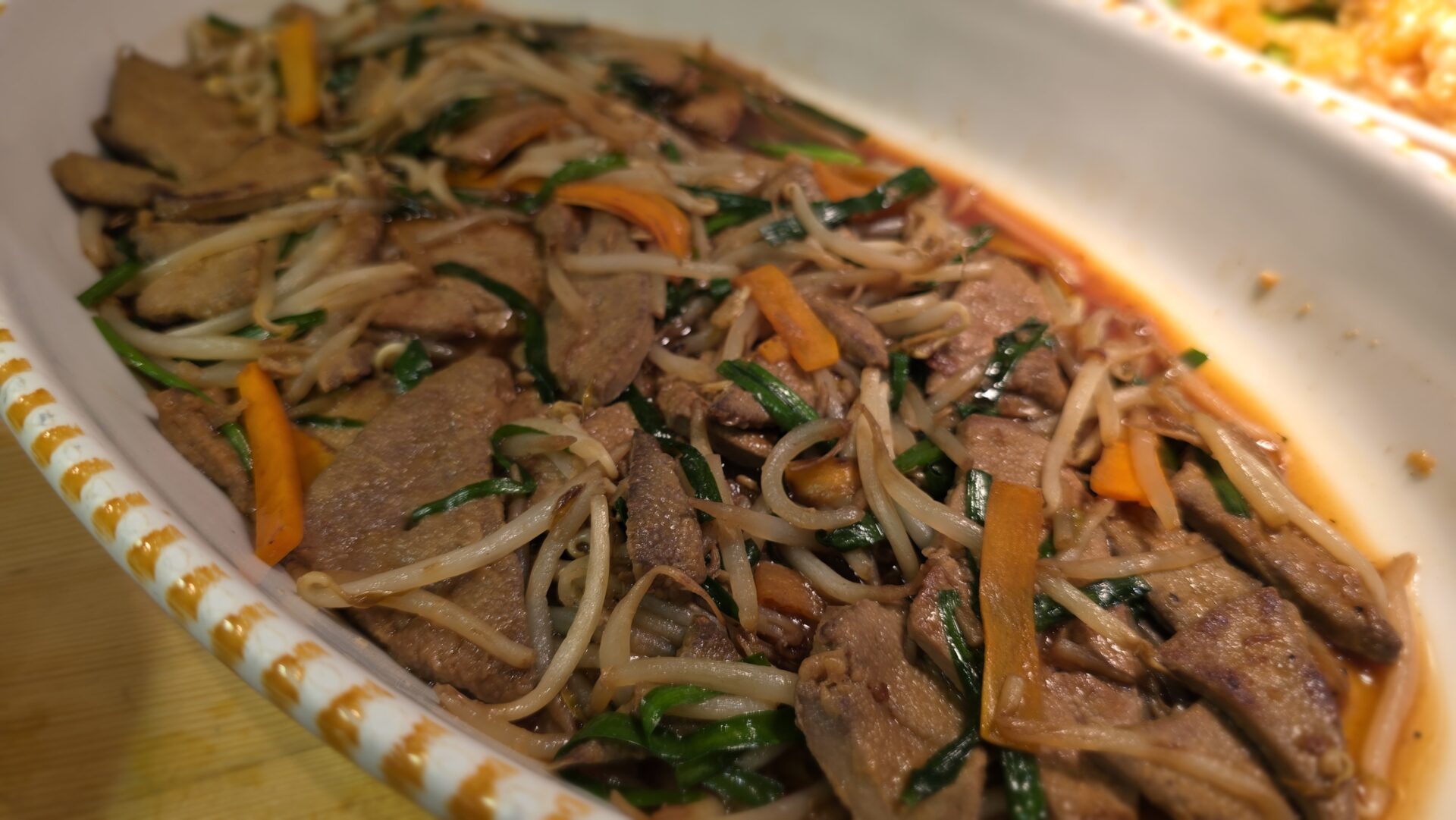 中華のニラレバ炒めは香り高く、食欲をそそる一品。牛ロースステーキ(自家製ジャポネソース)は、変わらぬ人気の定番メニューとしてご用意しています。