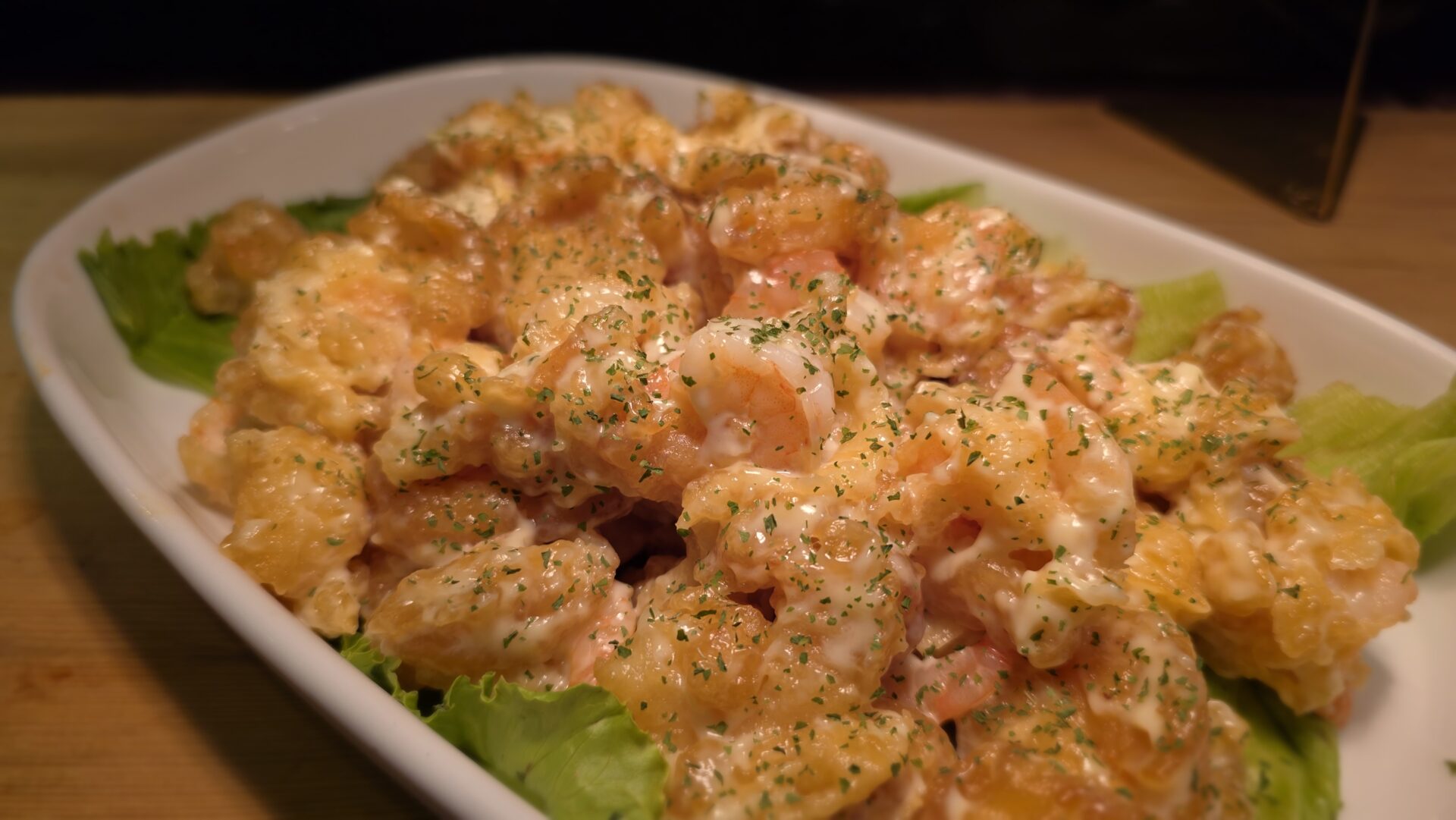 とり天と秋野菜の天婦羅は、サクッと香ばしく。中華のエビマヨや、海の幸と彩り野菜のヴァプール(バジルソース仕立て)もおすすめです。