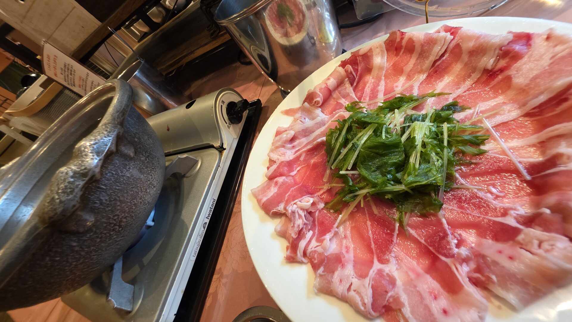 秋刀魚の塩焼き(カボス添え)や秋鮭のムニエル、茸入り煮込みハンバーグなど、季節感あふれる一品が並びます。国産豚のしゃぶしゃぶ鍋は、野菜とともに体をじんわり温めてくれます。