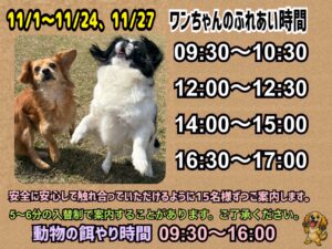 ワンちゃんたちとのふれあいやヤギさんたちにおやつ(120円)をあげることもできます。※ふれあいの時間・えさやりの時間が決まっております