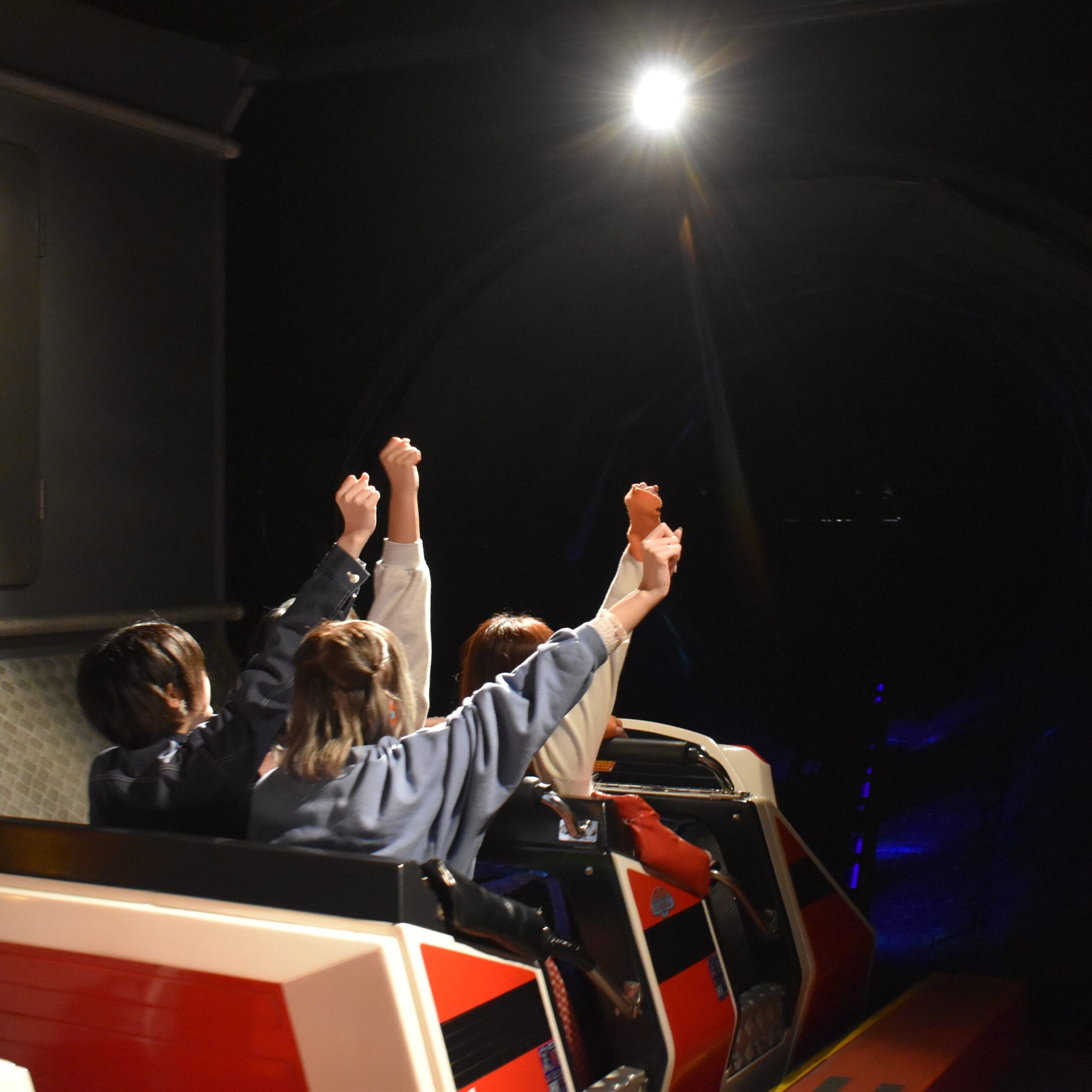 暗闇を疾走する屋内型のジェットコースターです。65歳以上の方でもご利用いただけます。