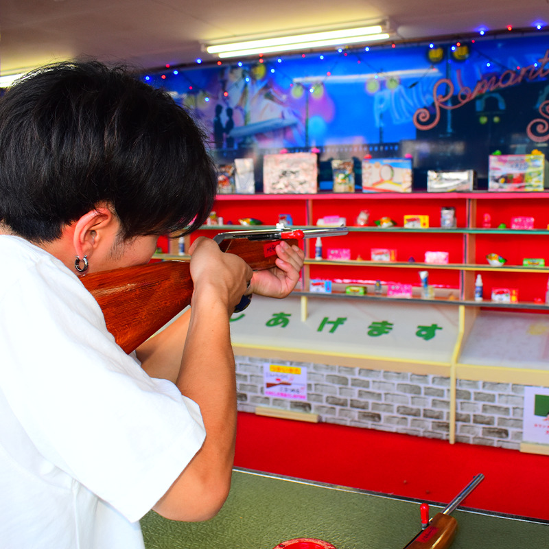 お祭りなどでおなじみの射的。たくさん落としてステキな賞品をゲットしよう!