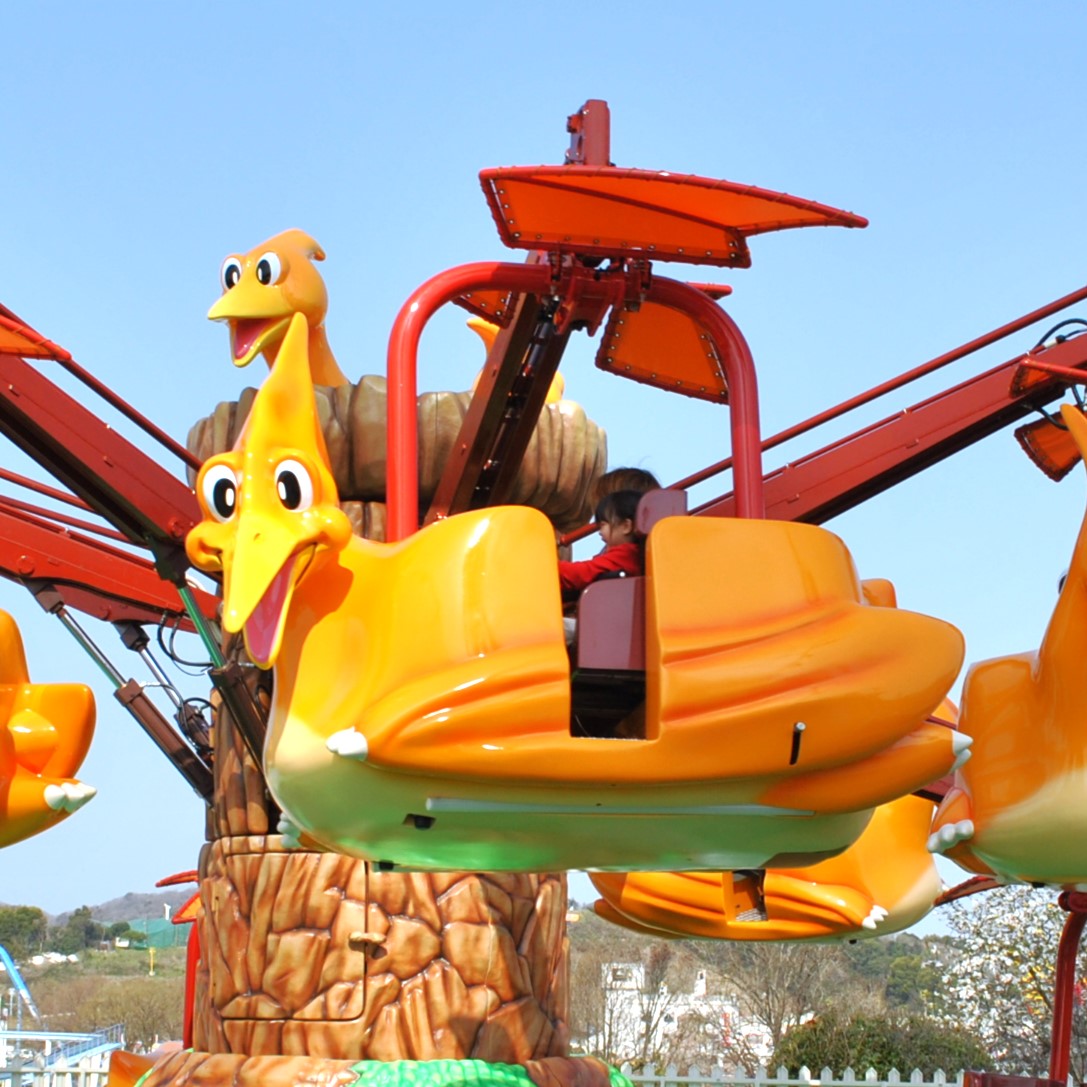 遊園地の定番といえばこれ、空中ブランコ。絶叫マシン好きな人にもちょっと苦手な人にも大人気!
