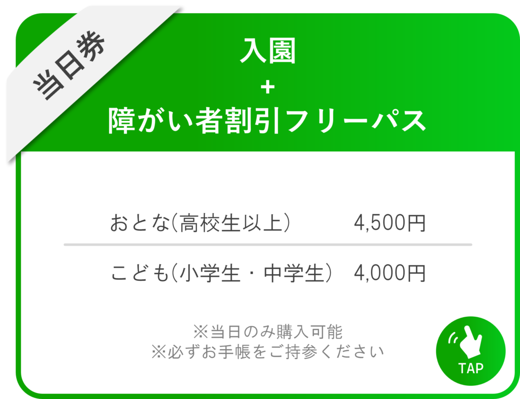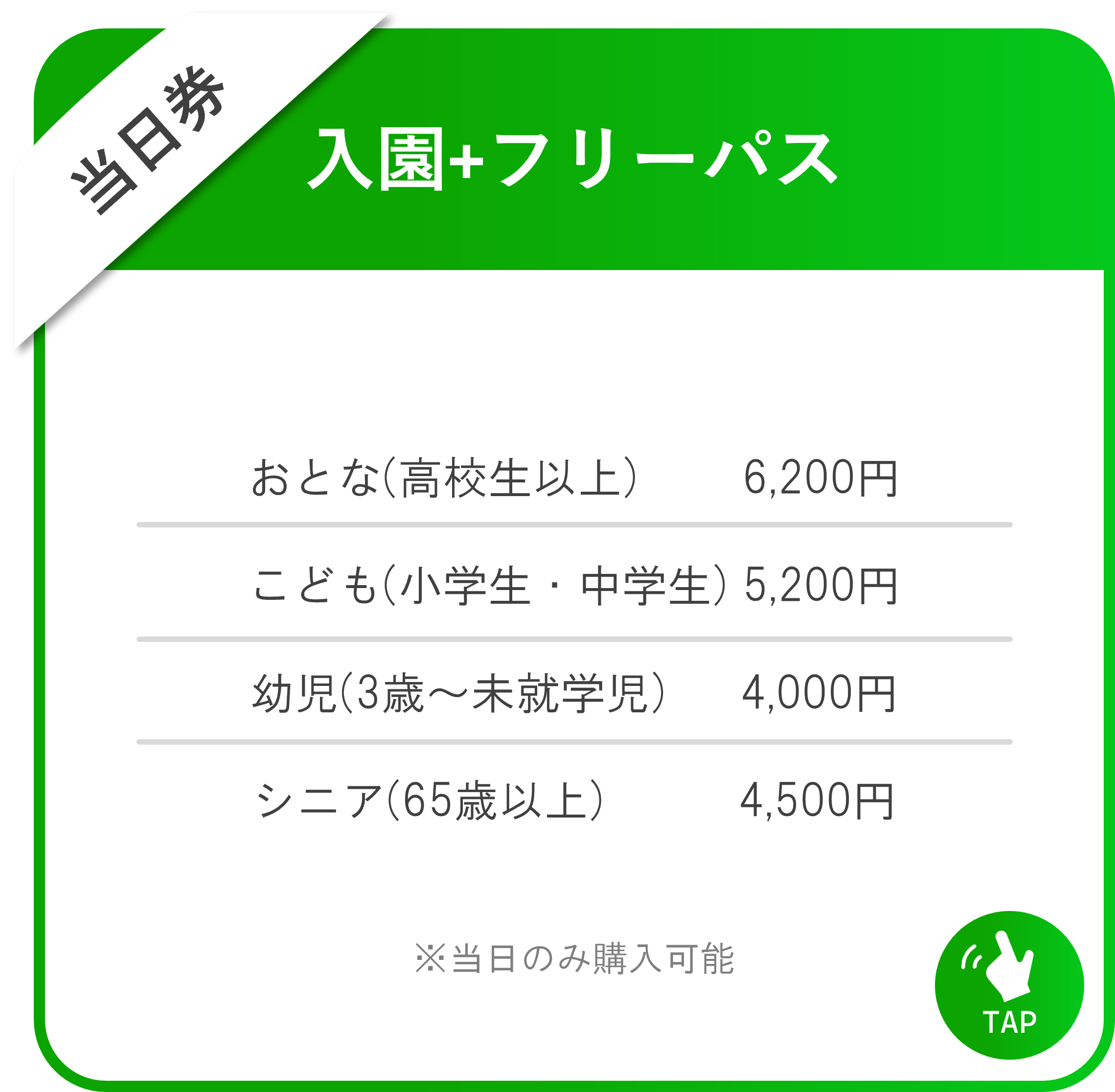 アソビュ―よりメールでQRコードが送られてきますので、ご入園口でご提示ください。※メールが開けない場合はアソビュ―マイページよりご提示いただけます。